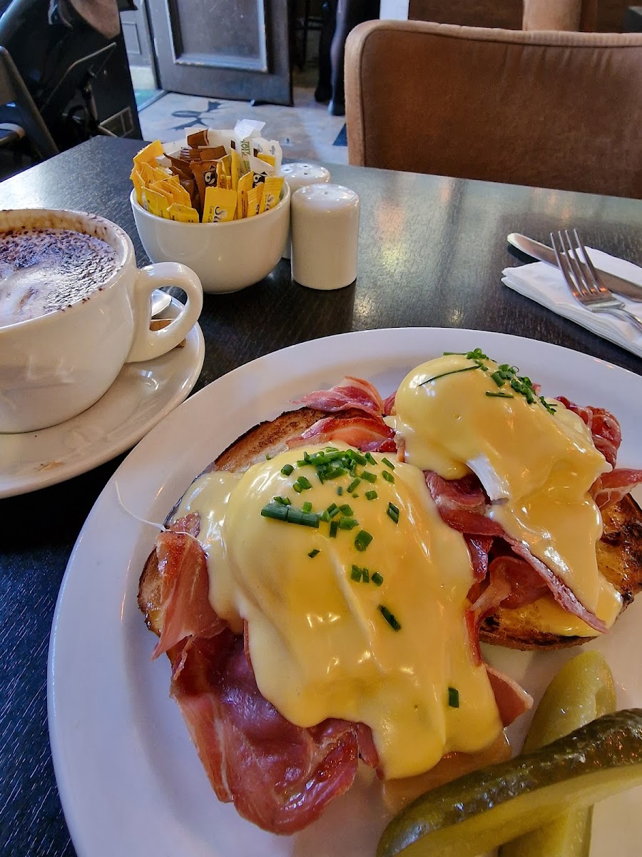 If you're in the mood for something a bit more filling, try the Eggs Benedict with Serento Ham. This dish features perfectly poached eggs, a rich hollandaise sauce, and tender Serento ham, all atop a soft English muffin. It’s the kind of dish that feels like a treat but still offers that satisfying meal you crave. Alongside these delectable options, the café also serves a wide range of beverages, including a smooth and rich Latte Coffee, perfect for pairing with any dish on the menu.